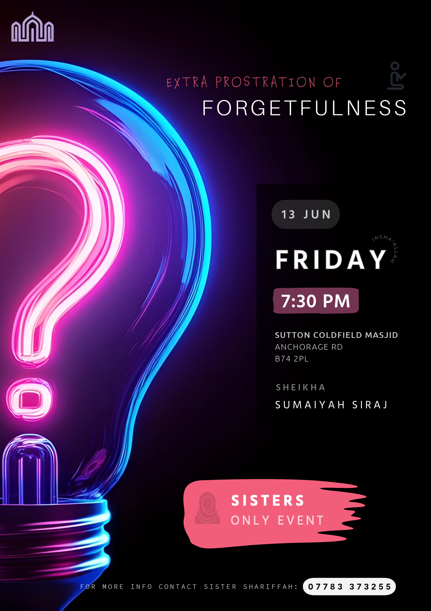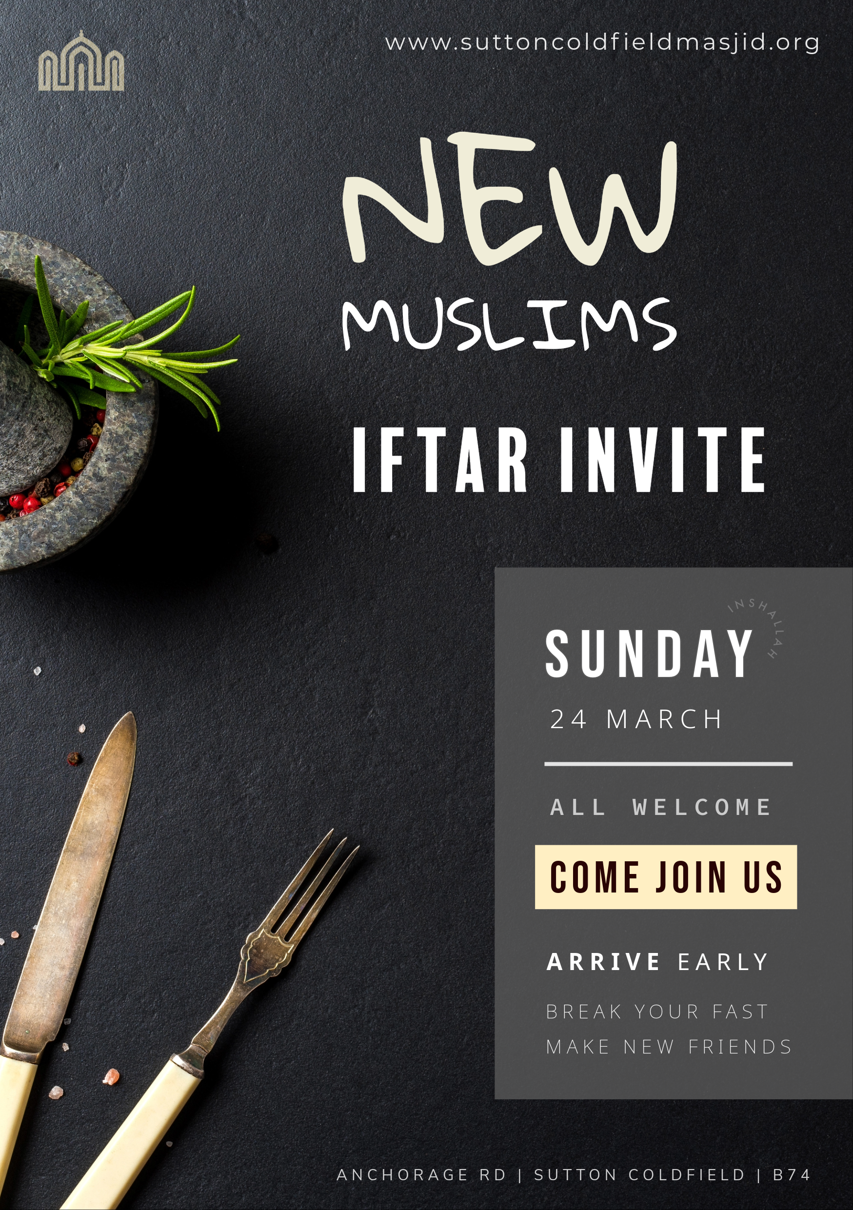 Sutton Coldfield Muslim Association is a UK registered charity (no. 1198049).