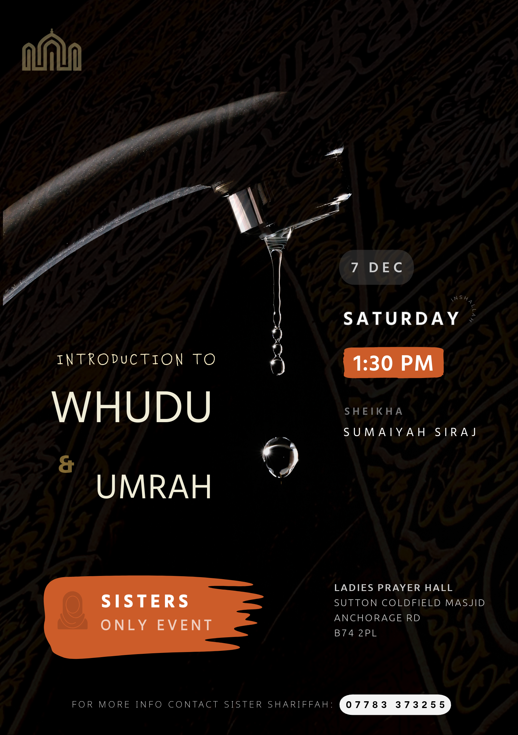 Introduction to Whudu & Umrah - Sat 7 Dec